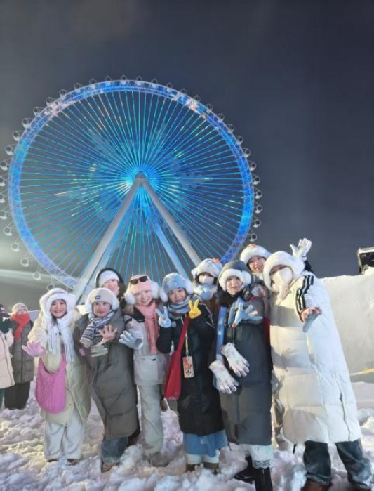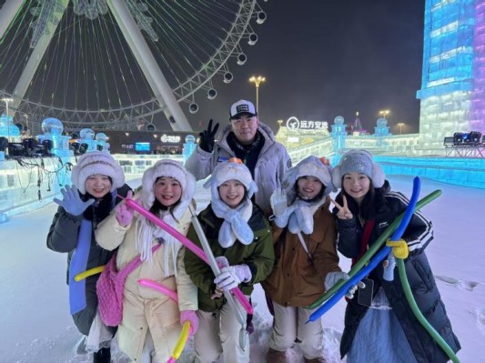 12月23日,车队从亚布力返回哈尔滨。经过短暂休整,大家前往心心念念的哈尔滨冰雪大世界,置身于冰雕玉砌的童话王国。冰滑梯上的尖叫、冰灯前的合影、冰雪城堡下的畅谈,每一个瞬间都成为珍贵的回忆。最热烈的“梦想大舞台”蹦迪环节,我大立新的5位小伙伴还被主持人邀请上台,成为全场焦点!